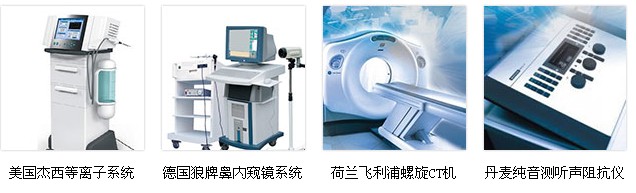 拥有全球高端耳鼻咽喉治疗仪器:半导体激光治疗仪、超声雾化器、WOLF耳鼻喉内窥镜系统、 美敦力耳鼻喉治疗台、 美敦力动力系统、微创技术消融系统、耳鼻咽喉综合治疗台、功能性鼻窦内窥镜技术、 杰西微创鼻炎治疗术消融系统等一系列前沿检验仪器设备。 好的检验中心、高精尖的诊疗设备和资深的耳鼻咽喉科医学医生,秉承严谨求实的科学态度和诚信求精的行医宗旨,全心致力为患者打造较好的鼻窦炎诊疗效果。