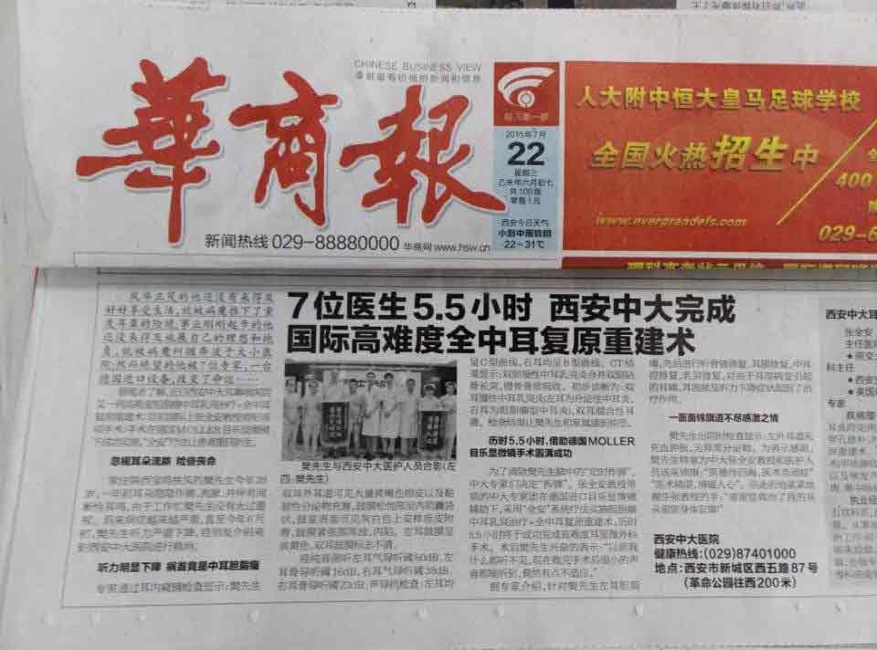 今年3月份,王先生来到西安新城中大耳科。经仔细检查,张全安教授给王先生制定以听力重建为目的的,把病灶有效清除,耳流脓的症状随之消失。两个月之后复查,王先生的听力已有明显改善。