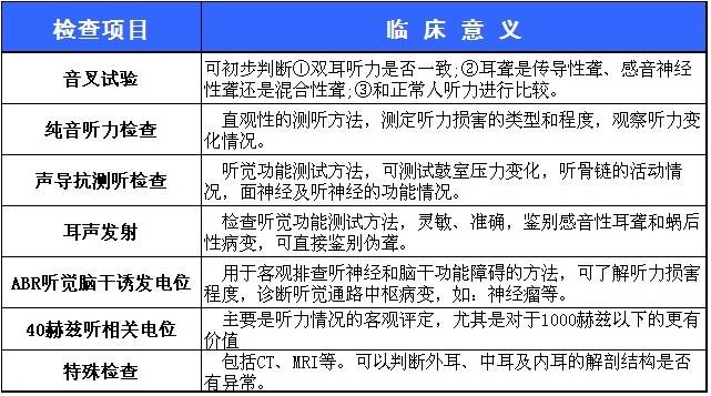 (三)耳聋应做的其他相关检查:血常规、尿常规、血液生化检查、眼科检查、心电图、B超、高氯酸释放试验等。