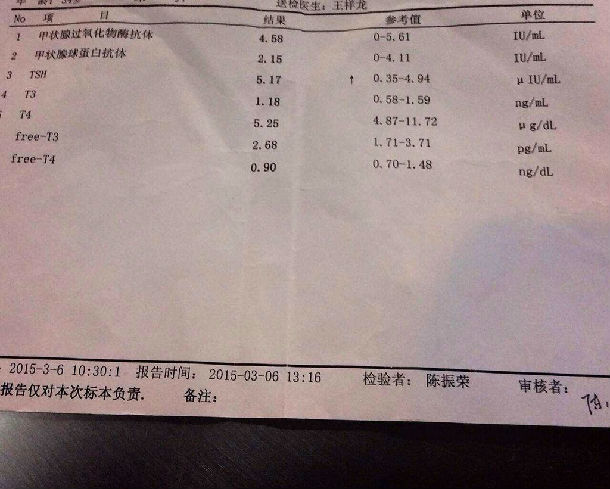 5、甲状腺抗体(球蛋白抗体、过氧化物酶抗体):不管他们升高多少,只是提示甲状腺炎(桥本氏病),不必在意抗体水平,他们与甲状腺疾病严重程度没有关联,而且,治疗以后抗体水平也不会下降,所以不必太在意。