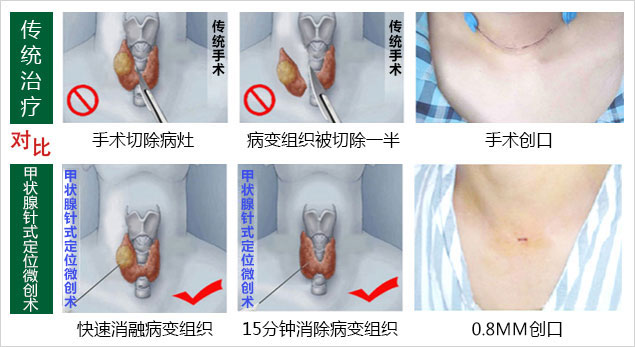 4.安全有效,无副作用:不伤害甲状腺正常组织,不切除甲状腺,不影响甲状腺功能。