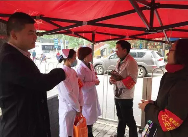 ▲为迎接党的十九大,西安市新城区民乐社区书记郑永组织西安中大眼耳鼻喉医院开展健康扶贫巡诊活动